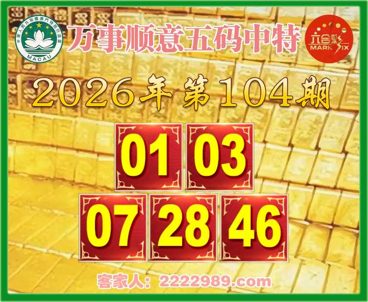 104期: 《万事顺意》 五码中特01.03.07.28.46】开:01