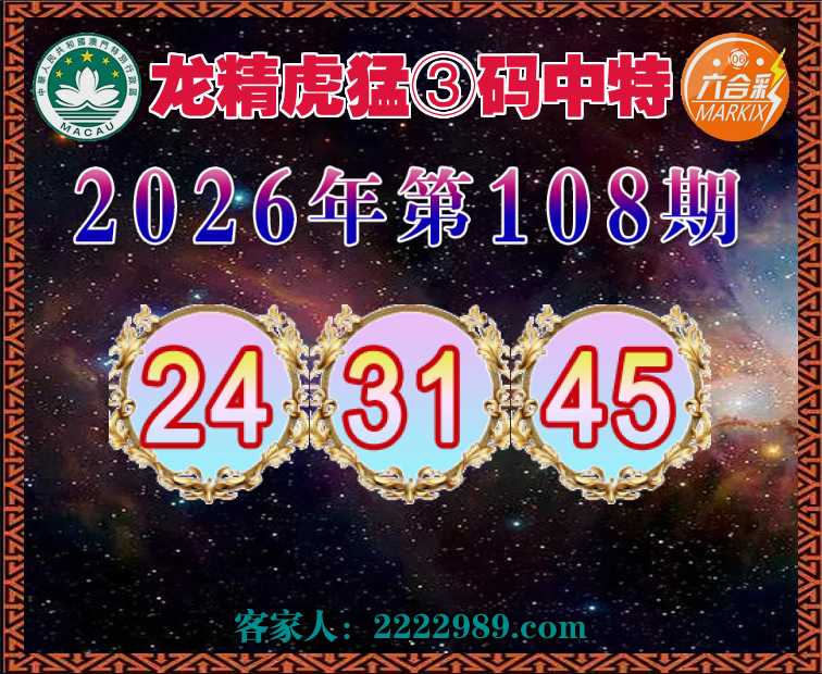 108期:《龙精虎猛》 ③码中特【24.31.45】开:45